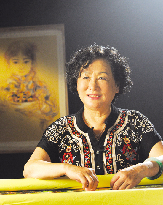 傳承人概況 蜀繡國家級非遺傳承人郝淑萍,1945年出生于成都,中國工藝美術(shù)大師、 高級工藝美術(shù)師、國務(wù)院有突出貢獻(xiàn)專家,現(xiàn)任成都郝淑萍蜀繡工藝美術(shù)大師工作室董事長。郝淑萍大師多次到國外作技藝表演,將蜀繡藝術(shù)推廣到國外。圖為蜀繡傳承人郝淑萍。