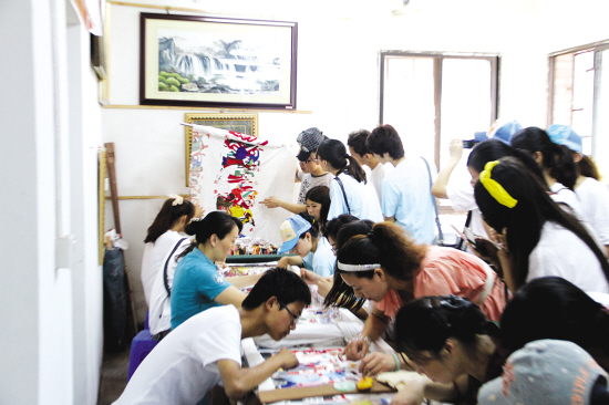 圖為武漢紡織大學(xué)生正在學(xué)習(xí)漢繡