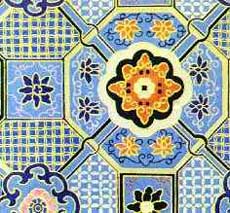 宋錦圖案一般以幾何紋為骨架,內(nèi)填以花卉、瑞草,或八寶、八仙、八吉祥。八寶指古錢、書、畫、琴、棋等,八仙是扇子、寶劍、葫蘆、柏枝、笛子、綠枝、荷花等,八吉祥則指寶壺、花傘、法輪、百潔、蓮花、雙魚、海螺等。在色彩應用方面,多用調(diào)和色,一般很少用對比色。