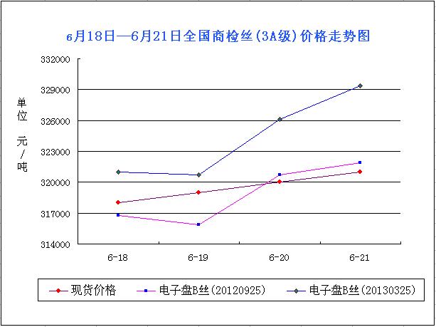 從圖表可以看出,本周現(xiàn)貨市場成偏強(qiáng)盤整,且本周價(jià)格基本處于小幅直漲行情,雖然前后價(jià)格走勢并不明顯,漲幅也不大,但對(duì)后世影響較為有利,對(duì)于近期一直疲軟的繭絲市場來講無疑是提供了價(jià)格支撐。本周價(jià)格:國內(nèi)3A級(jí)商檢絲現(xiàn)貨均價(jià)周初318000元/噸左右,隨后價(jià)格一路微幅上行,周末均價(jià)在321000元/噸左右,整體漲價(jià)3000元/噸。本周繭絲市場的影響主要來有幾個(gè)方面:一是新繭方面,隨著前幾批繭子的逐漸推出市場,后來的廣西一帶的三、四批繭子,以及江浙一帶的二、三批繭子,不論是在質(zhì)量還是產(chǎn)量上都不樂觀——質(zhì)量的下滑意味著收購價(jià)提升不上去,而產(chǎn)量的驟然減少也表明行情將得到支撐。由此,一利一空,而產(chǎn)生了現(xiàn)在這種膠著行情;而是生產(chǎn)消費(fèi)情況,據(jù)媒體消息,隨著夏季的來臨,企業(yè)生產(chǎn)加大,而常規(guī)的絲綢消費(fèi)季也來臨,每年夏季將是絲綢產(chǎn)品最熱銷的時(shí)候,由此對(duì)上游產(chǎn)生一定的利多影響,但受經(jīng)濟(jì)形勢影響,影響微弱,因此行情只是做偏強(qiáng)盤整;再有就是市場的調(diào)節(jié)性,基本近兩個(gè)月以來,繭絲市場都呈現(xiàn)下跌走勢,隨著新繭的沒落,資金流將逐漸流入盤面,市場方面也會(huì)做相應(yīng)調(diào)整,行情的到一定支撐。