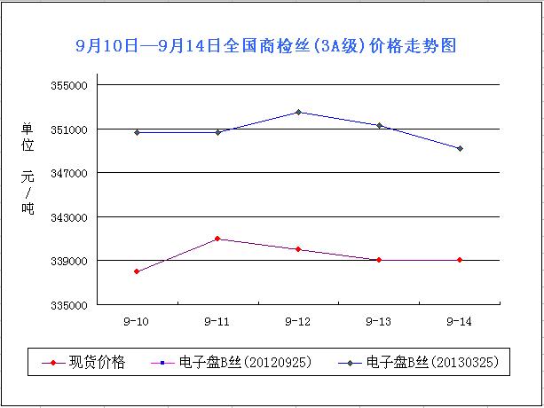 本周,隨著新繭收購(gòu)價(jià)進(jìn)一步提高,繭絲市場(chǎng)得到支撐,除了周初有小幅疲態(tài)外,之后市場(chǎng)延續(xù)強(qiáng)勢(shì),并一度沖破34萬(wàn)/噸大關(guān),但明顯市場(chǎng)動(dòng)力不足,很快便顯現(xiàn)乏力,不過(guò)價(jià)格波動(dòng)并不大。另外盤面上本周合約出現(xiàn)變化,隨著交割的到來(lái),9月主力退出盤面,市場(chǎng)開始轉(zhuǎn)移重心,資金流進(jìn)入明年合約,因此本周明年3月合約曾出現(xiàn)強(qiáng)勢(shì)走高,但受大環(huán)境制約,周末價(jià)格出現(xiàn)回調(diào)。