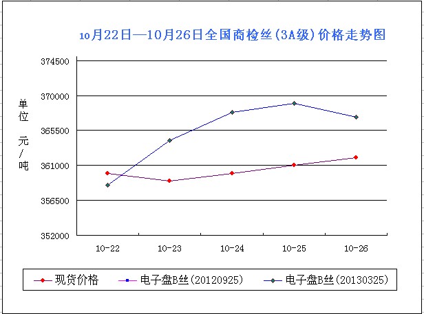 從圖表可以看出,本周繭絲現(xiàn)貨整體上揚(yáng),周初有較大幅度的回調(diào)。主要受上周末繭絲辦生絲放儲消息影響。上周末(10月19日),國家繭絲辦發(fā)布關(guān)于投放國家儲備廠絲的公告。公告中稱為確保國家儲備廠絲質(zhì)量安全,國家繭絲綢辦決定對部分國家儲備廠絲以公開競購方式進(jìn)行投放——投放品種為國家儲備B類白廠絲;投放總量約581噸。對于此消息,市場方面起初反應(yīng)較大,但是周一成交結(jié)束后發(fā)現(xiàn),對市場的整體影響并不大,現(xiàn)貨也只是稍作回調(diào),周一、周二下跌到低位也不過是35.8萬/噸左右,而后的時間,行情再次調(diào)整方向向上,周末成交價格在36.2萬/噸收尾。坊間消息,本周廣西各地秋繭收購價格繼續(xù)保持在42—43元/公斤左右,秋繭市場也基本進(jìn)入收尾,后期將逐漸上市末尾的一兩批繭子而已,高繭本基本確立,在此支撐下,繭絲行情后期或?qū)⒉粫写蟮牡鴥r。另外今年的產(chǎn)量多少越來越明了,減產(chǎn)似乎已經(jīng)成定局,只是減產(chǎn)多少的問題。據(jù)企業(yè)人士介紹,近期下游企業(yè)的訂單比著前一段時間有所減少,因此繭絲行情后市依然很謹(jǐn)慎。