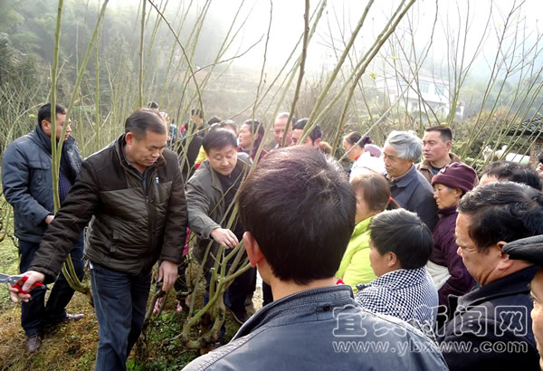 蠶桑技術(shù)人員正在示范桑樹修剪