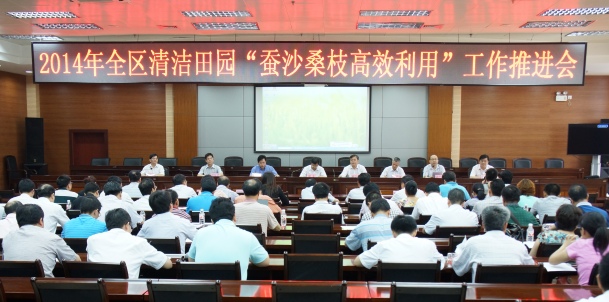 2014年6月13日,自治區(qū)農(nóng)業(yè)廳在宜州市召開全區(qū)清潔田園“蠶沙桑枝高效利用”現(xiàn)場會(huì),謝東副廳長出席會(huì)議并講話。全區(qū)10個(gè)市、20個(gè)蠶業(yè)生產(chǎn)縣(市、區(qū))農(nóng)業(yè)局的分管領(lǐng)導(dǎo)及蠶業(yè)站(經(jīng)作站)站長,農(nóng)業(yè)廳相關(guān)處室、田園辦及河池市、宜州市有關(guān)領(lǐng)導(dǎo),自治區(qū)蠶業(yè)技術(shù)推廣總站相關(guān)人員共80多人參加會(huì)議。