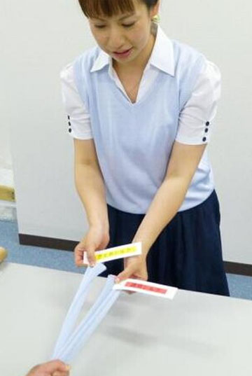 女職員正在用強(qiáng)度高、延展性好的“蜘蛛蠶絲”(左)與天然蠶絲制成的圍巾作比較。其身上穿著的背心材質(zhì)同為“蜘蛛蠶絲”。
